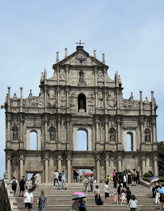 清晨乘坐港珠澳大桥穿梭巴士,约40分钟直达澳门。这座世界级工程本身就是一道风景。第一站便是世界文化遗产——大三巴牌坊,周边小巷藏着博物馆、手信店和咖啡馆,避开人流高峰更能拍出大片感。随后登上炮台山,俯瞰澳门半岛全貌;接着参观金莲花广场与妈祖庙,了解澳门作为海上丝绸之路重要节点的历史脉络。晚上阿兵推荐了几家本地人常去的葡国菜小馆,地道又实惠。