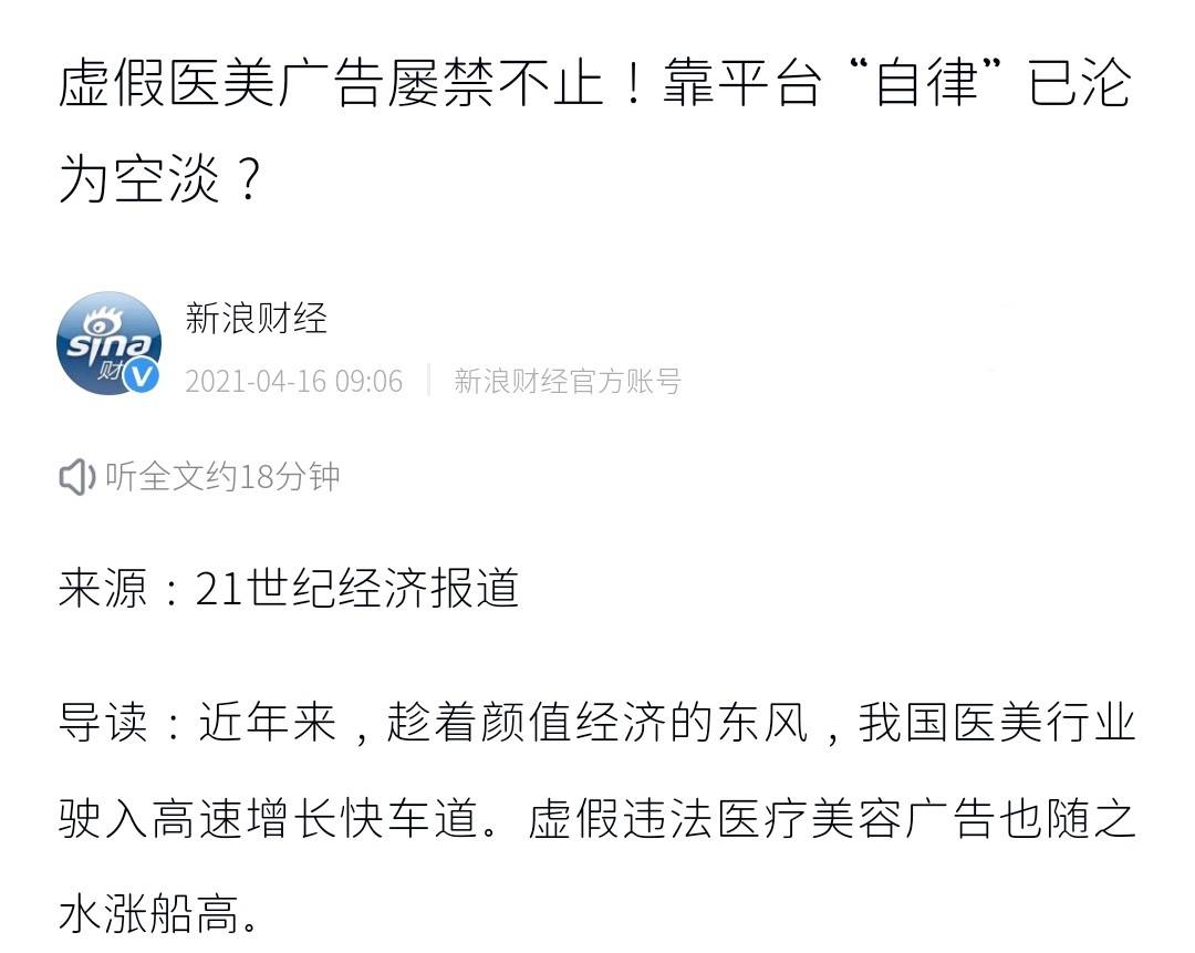不过近年来,趁着颜值经济的东风,我国医美行业驶入高速增长快车道。虚假违法医疗美容广告也随之水涨船高。