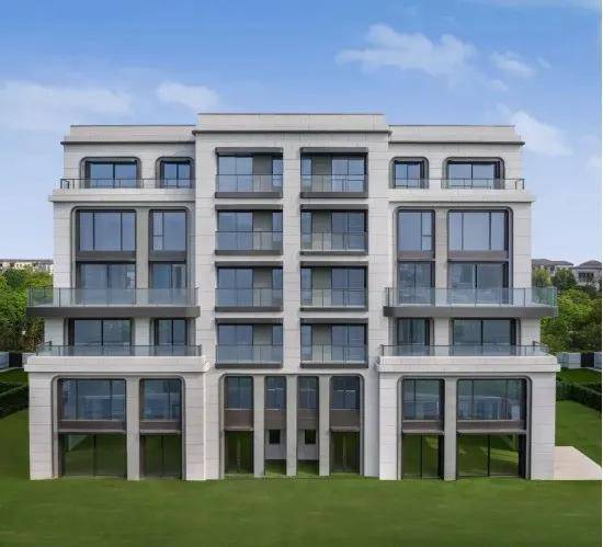 ●全幕墙弧形立面:传承之上再创新,采用干挂石材+铝板+玻璃搭配,现代典雅弧形立面,雕琢时间的款藏。
