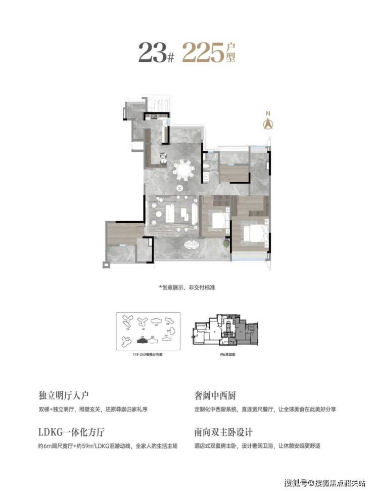 本次主推的196-279㎡新派科技大宅,是对“空间与智能”的重新定义。以建面约220㎡户型为例,采用了“LDK+洄游动线米,连通超大方厅与景观阳台。全屋植入了华为鸿蒙全屋智能系统,实现灯光、窗帘、空调、安防的语音与APP控制。双主卧套房设计,主卧配备独立衣帽间、双台盆卫浴及全景浴缸。所有户型均做到了100%南向采光,且专梯专户,电梯厅可作为私家前室使用。