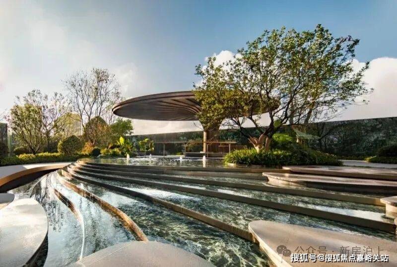 另外,大华公园柏翠利用12级叠水、2座树池、9步水上汀步,运用六重造景的手法打造近500平的中央水景!