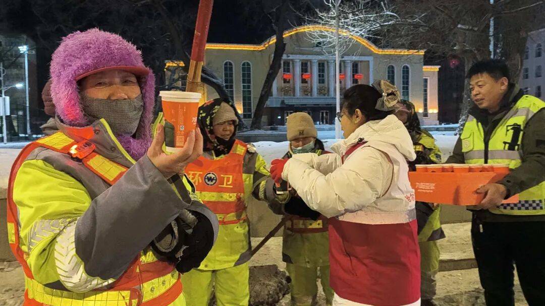 大年初一的深夜,平房区街头又一盏灯准时亮起。这是四叶草志愿服务队为环卫工人送豆浆的第十个年头。“赵大爷,过年好!喝杯豆浆暖暖!”滚烫的豆浆递到清雪工人冻得通红的手中,瞬间驱散了深夜的寒意。十年之约,从最初几人微光,已成如今众人星河。