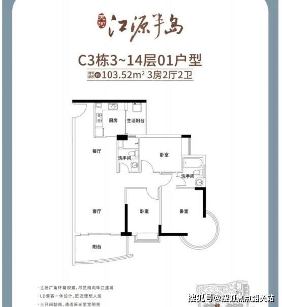 95㎡和103㎡的三房,是改善型家庭的优选。南北通透,五开间朝南,iMax级大阳台四面宽极致视野。主卧270°弧形玻璃幕窗,尽揽南向珠江。进深12米,面宽约9.8米,全屋动静分区,L型厨房科学动线。双阳台打造,生活景观两不误。