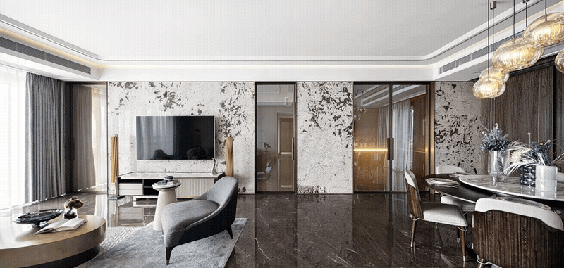 样板间整体设计遵循“简约大气、低调奢华”的风格,摒弃繁琐的装饰,注重空间的通透性与层次感,结合项目的江景与生态优势,将自然光线与江景景观最大化引入室内,让室内空间与室外自然景观无缝衔接,营造出“推窗见江、移步换景”的居住体验。墙面采用高端环保材质,搭配简约的线条设计,彰显高端质感;地面选用优质石材,纹理自然流畅,既美观又易于打理,兼顾实用性与美学价值。