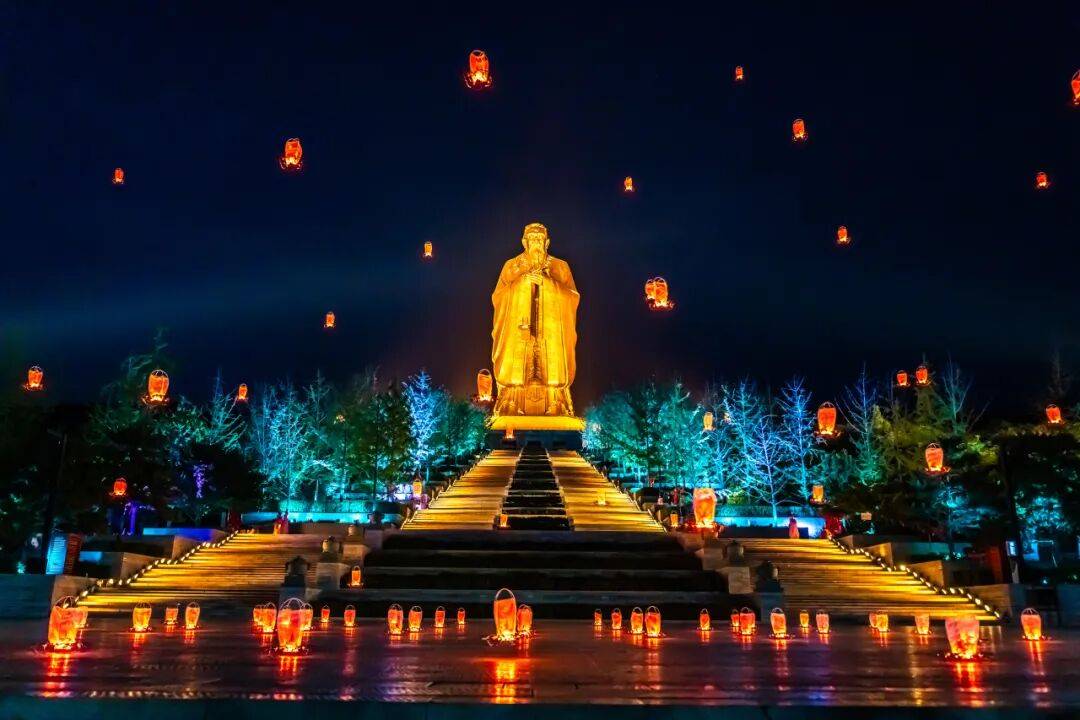 在济宁,金色的光芒被赋予了思想的重量。尼山圣境的夜间光影大秀,用现代科技将儒家经典化作流淌的金色诗篇,震撼人心。而在其旁的鲁源村,温暖的灯光从古朴的院落中透出,讲述着寻常人家的宁静生活。