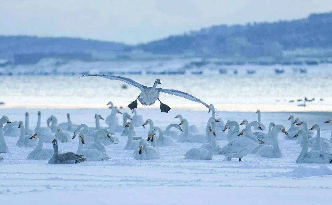与之呼应的是另一群优雅的舞者——大天鹅。在威海荣成大天鹅国家自然保护区、那香海·天鹅湖或是烟墩角村的天鹅湖畔,看它们曲颈向天,在碧波与晨雾间滑行,羽翼划破水面,留下一道道宁静的涟漪。
