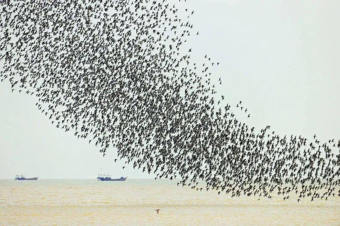 在东营黄河三角洲的滩涂上,落日时分,数以万计的候鸟归巢,在空中盘旋、组合,形成瞬息万变的“鸟浪”。它们的身影在黛色的天幕上划过流畅的线条,是生命最为壮美的集体舞蹈。