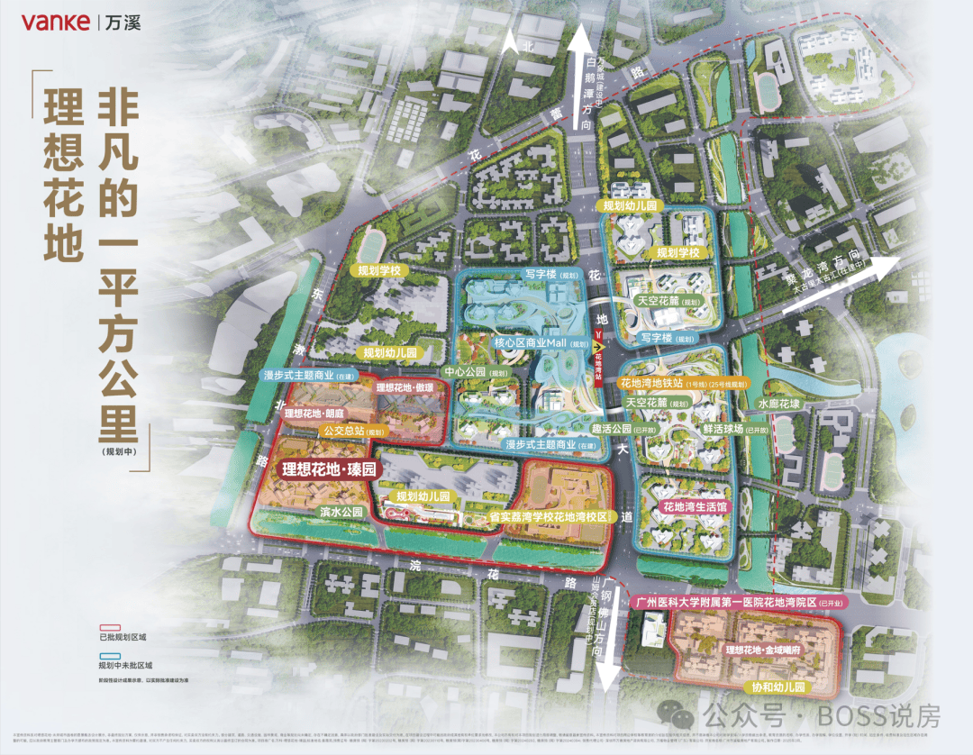 周边规划3座潮奢商业地标:全国首座双太古(在建中)、26.9万㎡华润万象城(在建中)、18万㎡理想花地城市级购物中心(在建中)