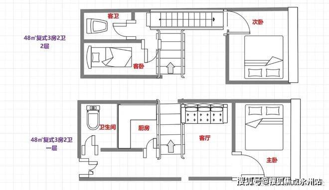77㎡4房1卫:一层4套端头位置东北,西北,东南西南,双面采光景观4面景观