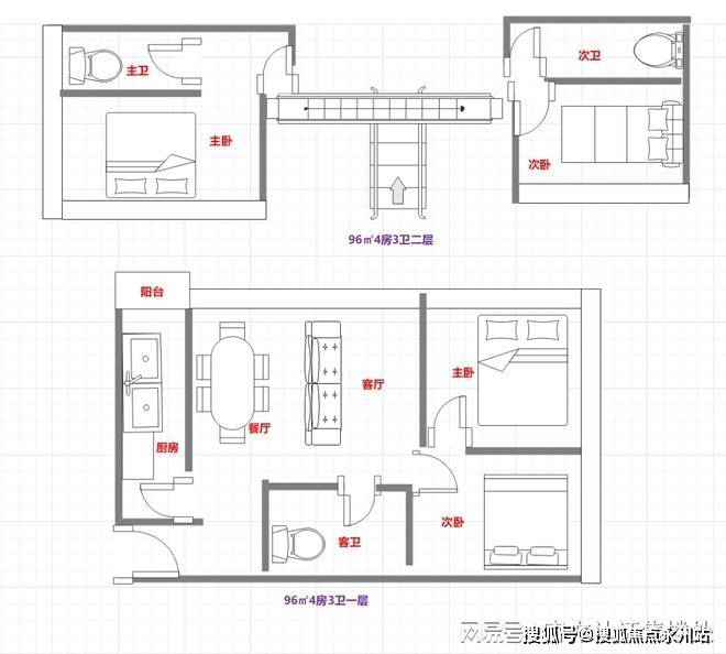 96㎡4房3卫:一层2套双面采光,西南前海湾+大小南山,东南深圳湾+大小南山,东北深圳湾+城市景观